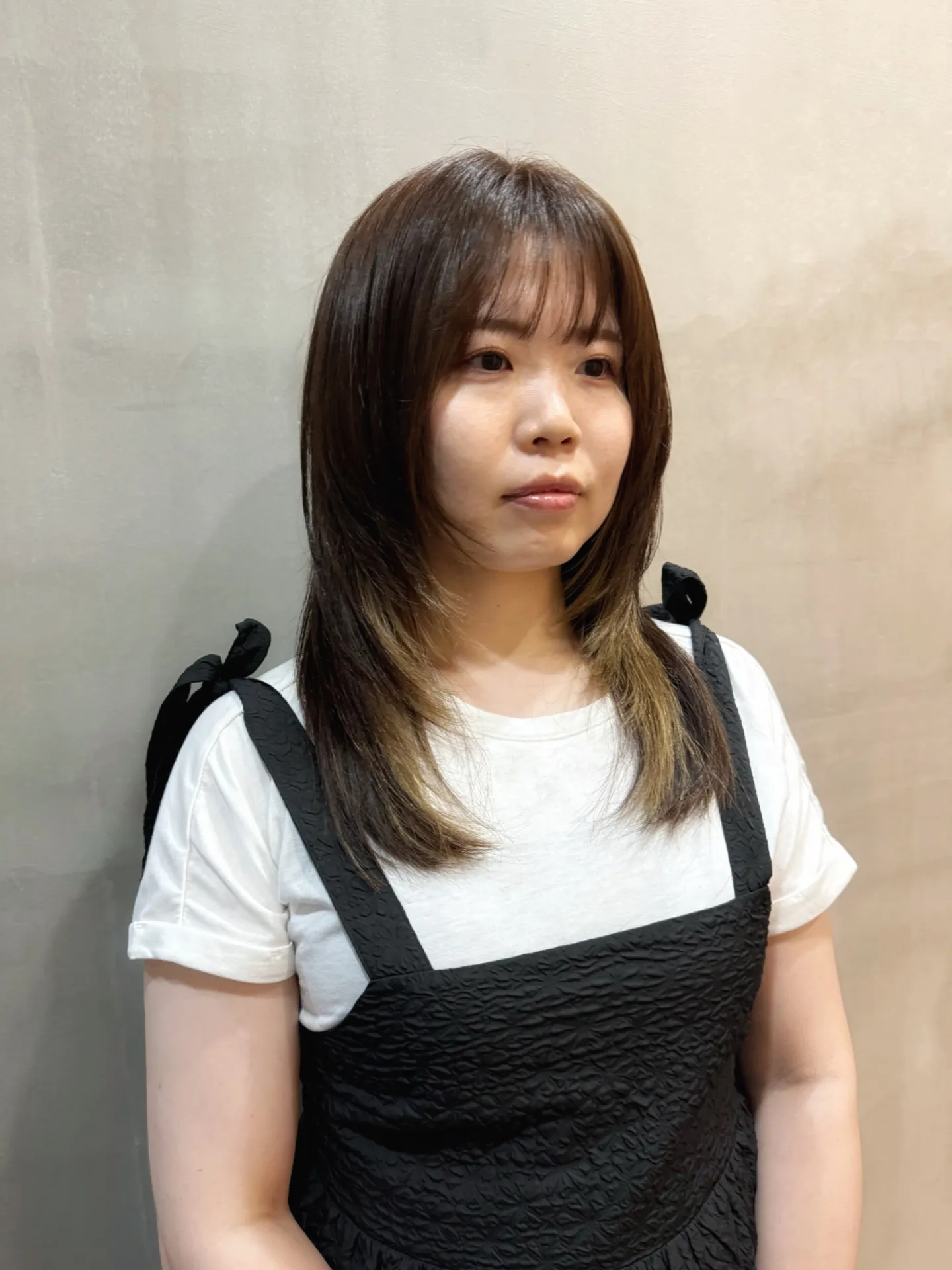 ナチュラル×インナーカラーの抜け感ミディアム 黒髪ベースにさりげなく入れたインナーカラーが映える、ナチュラルなミディアムスタイル♪ 顔まわりにしっかりレイヤーを入れることで、重たく見えがちな…
